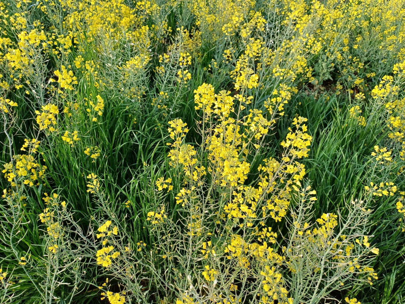 그 푸르른 잎사귀와 어우러진 꽃들은 넓은 들과 언덕을 덮어 화려한 유채밭을 만듭니다.