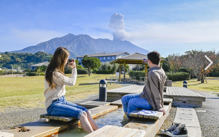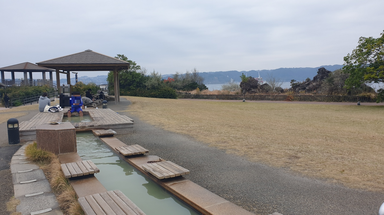 배에서 내려 사쿠라지마를 보기 위해 쿠로카미 전망대로 가기 전에 근처에 있는 나기사공원으로 먼저 갔습니다. 이곳은 사쿠라지마항에서 도보로 8분 거리에 있는 공원으로 바다를 보며 족욕을 즐길 수 있는 곳입니다. 거기다가 무료입니다. 활화산 기슭에서 나온 온천수로 이 겨울에 족욕을 할 수 있다니 그렇지 않아도 오전에 센간엔에서 내내 걸어 다녀서 피로감이 있는데 코스가 너무 좋았습니다. 주변 경관도 좋고 시설도 편리하게 되어 있어 누구든지 잠깐 쉬어갈 수 있어서 참 좋았습니다