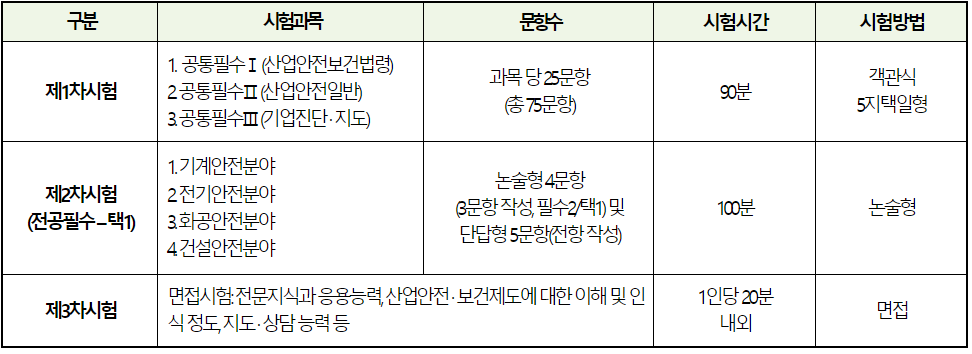 건설안전기술사의 경우 전공필수, 공통필수1 및 공통필수2 과목이 면제대상인 반면 건축시공기술사의 경우 전공 필수 과목만 면제가 되므로 원서접수 시 수험자가 현명하게 판단하시어 선택하시면 됩니면접은 어떻게 진행되나요? 면접관 인원수와 점수 채점 방법?