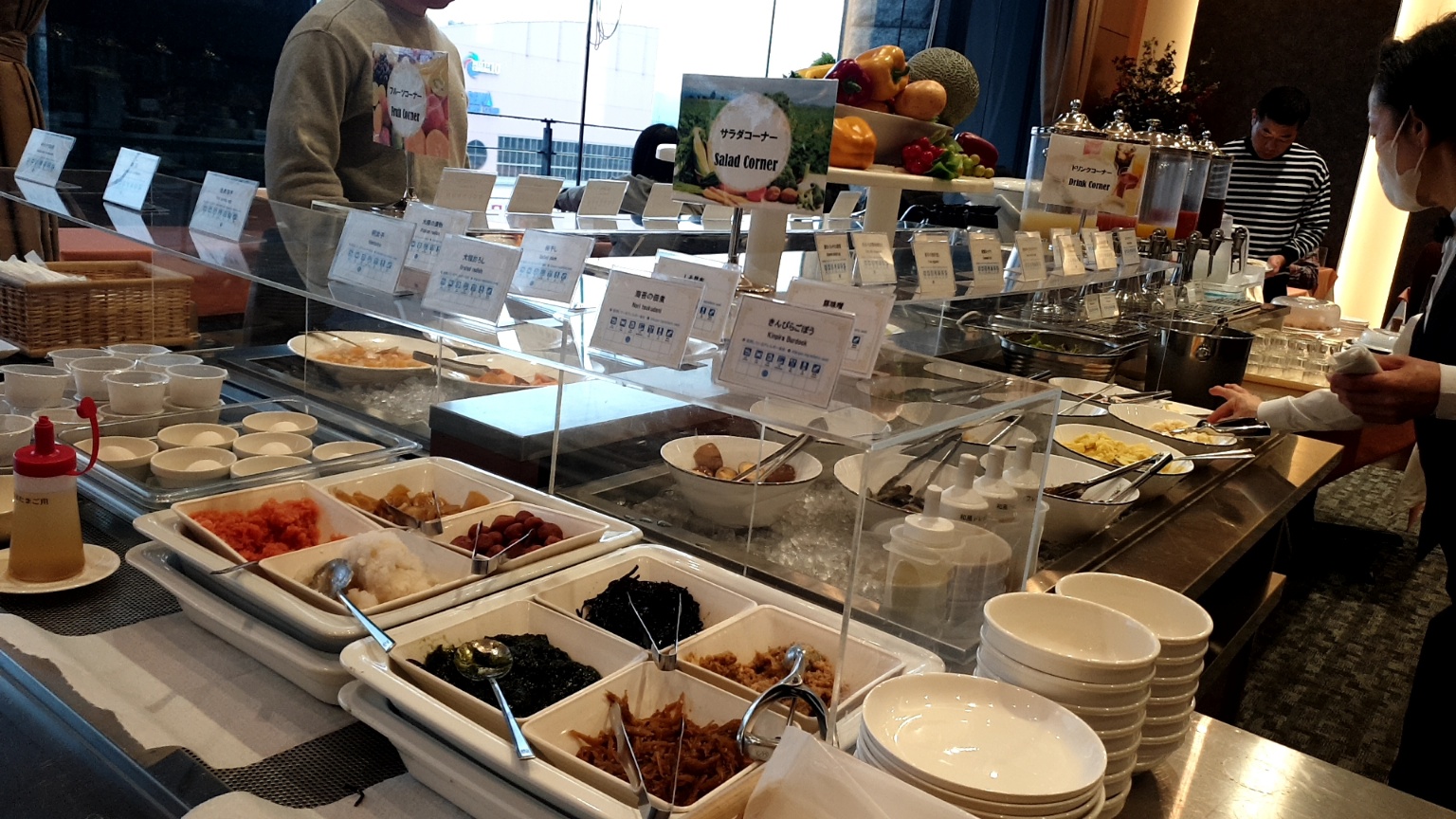 일본여행 중 3박을 하는데 호텔 조식은 이번 한번뿐이라 아침에 무거운 몸을 이끌고 식당으로 내려왔습니다. 처음 1박 때는 기차에서 도시락을 먹었고, 낼은 료칸이라 호텔 조식과는 다르거든요. 호텔 식당은 여느 호텔 식당과 별반 다르지 않았습니다. 으리으리한 5성급, 6성급 호텔이 아니기 때문에 조식 뷔페 음식 종류도 엄청 다양한 건 아닙니다. 그러나 조식으로 먹기엔 전혀 부족하지 않았습니다