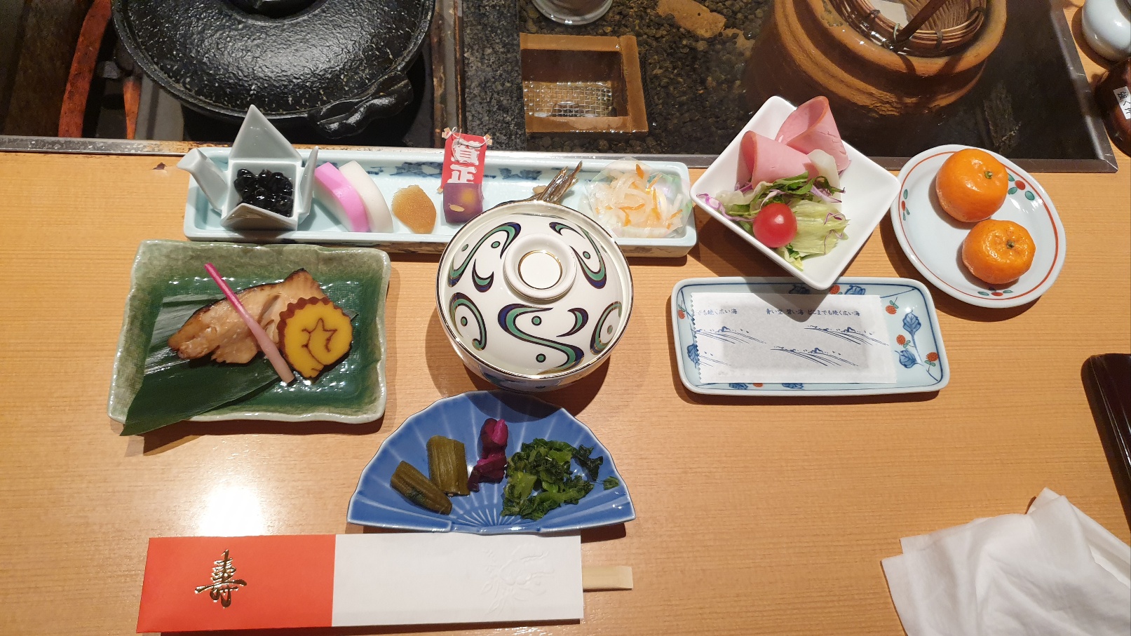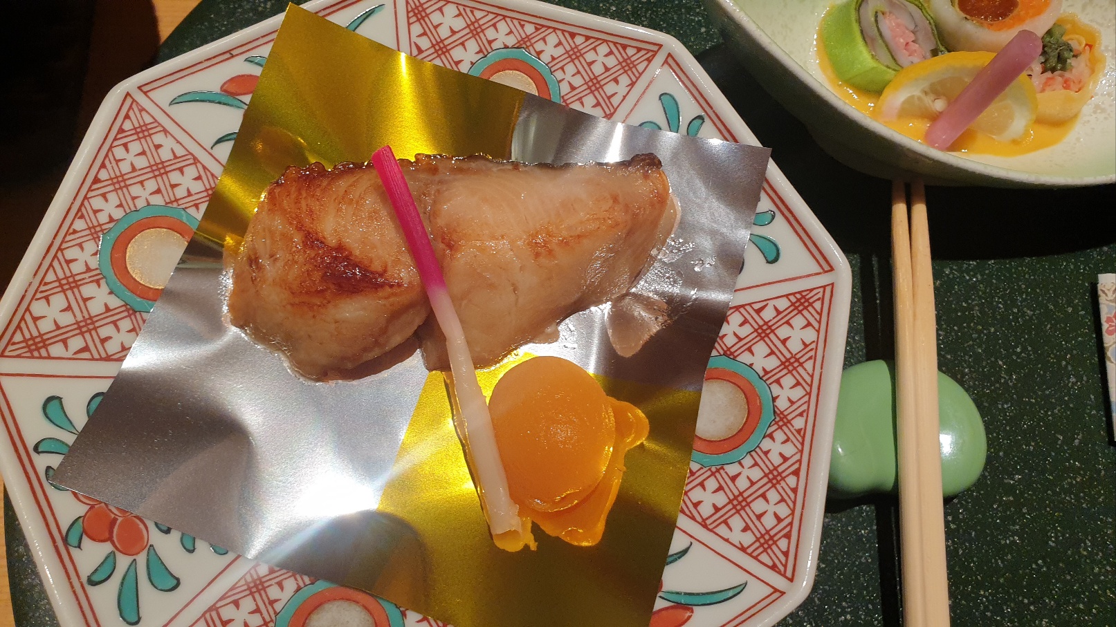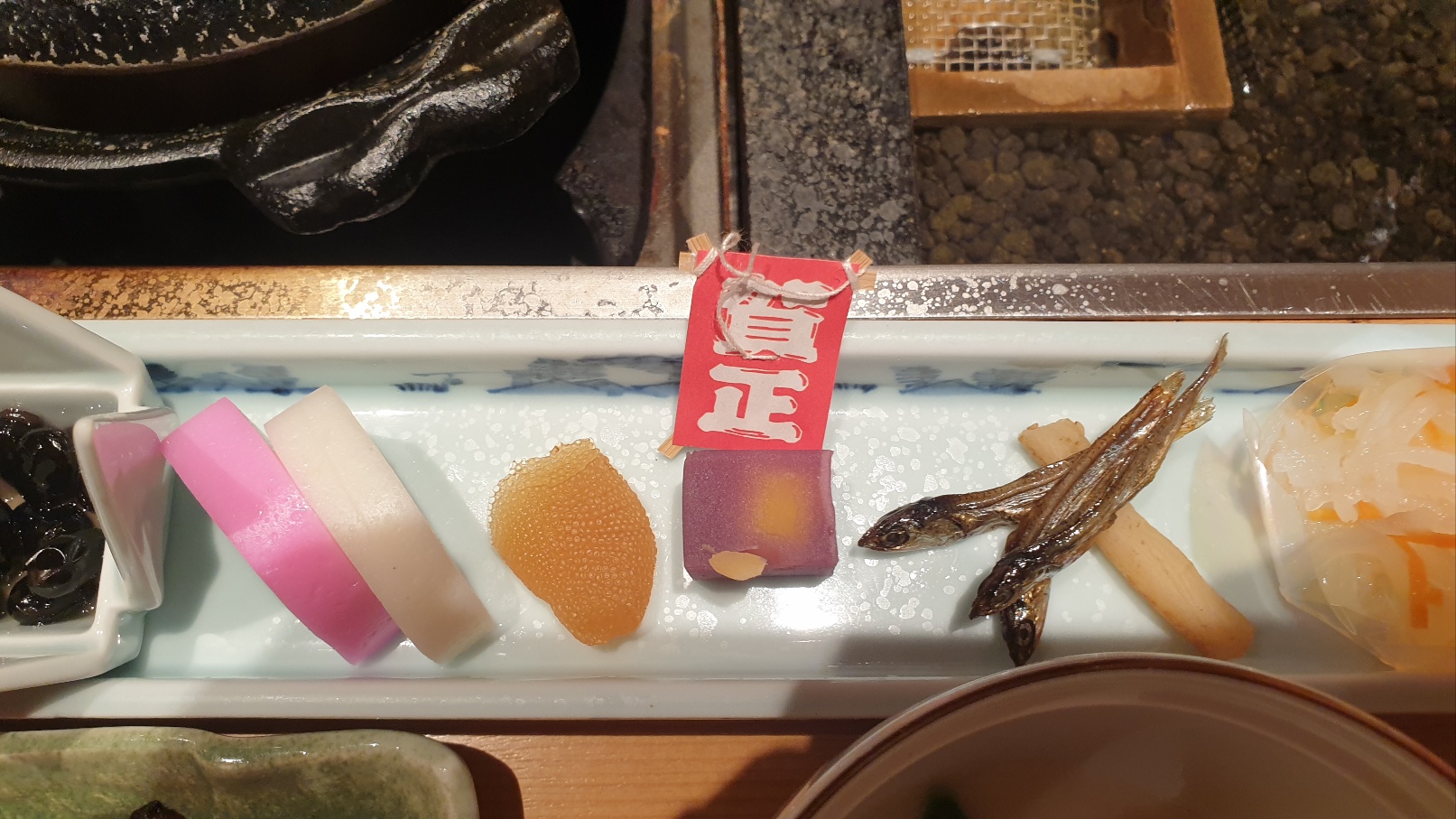 특별한 날에 먹는 특별한 음식이라 모양도 예쁘고 색깔도 예쁩니다. 정성이 많이 들어간 음식입니다. 가이세키 요리에서 음식은 맛뿐만 아니라 장식과 배치도 중요하다고 합니다. 그래서 이렇게 화려한 가 봅니다