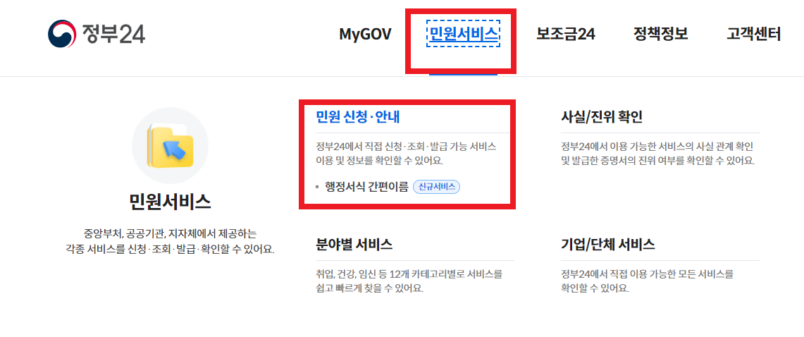 | 구분 | 자동차민원 대국민 포털 | 정부24 |