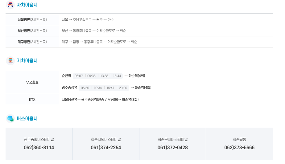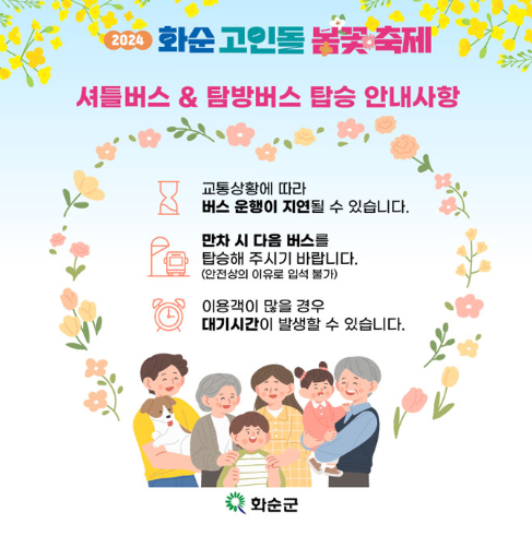 그리고 화순군민과 인근 주민을 위해 셔틀버스도 운행하니 대중교통을 이용해서 오셔도 됩니다