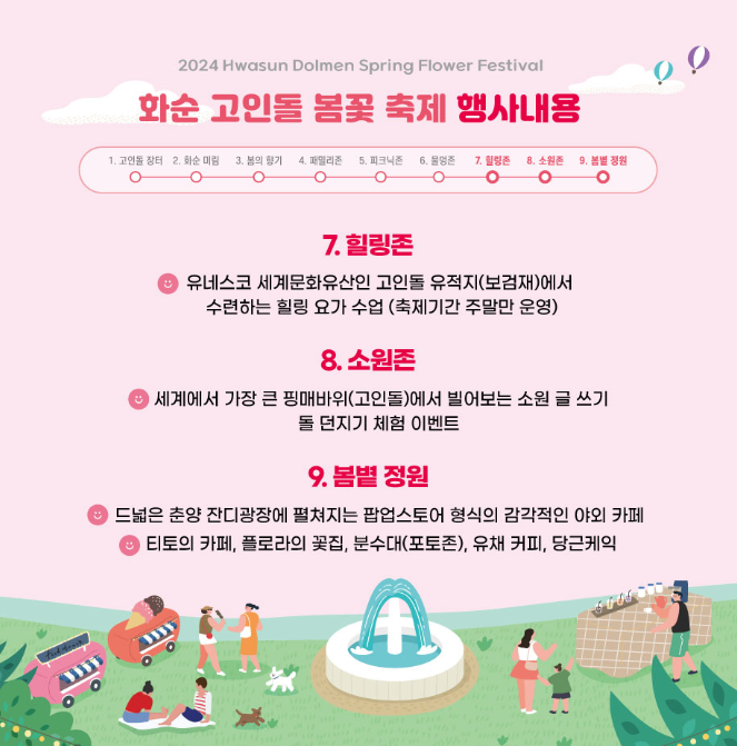 ▶ 화순 고인돌 봄꽃 축제장은 9개의 존이 있습니다.